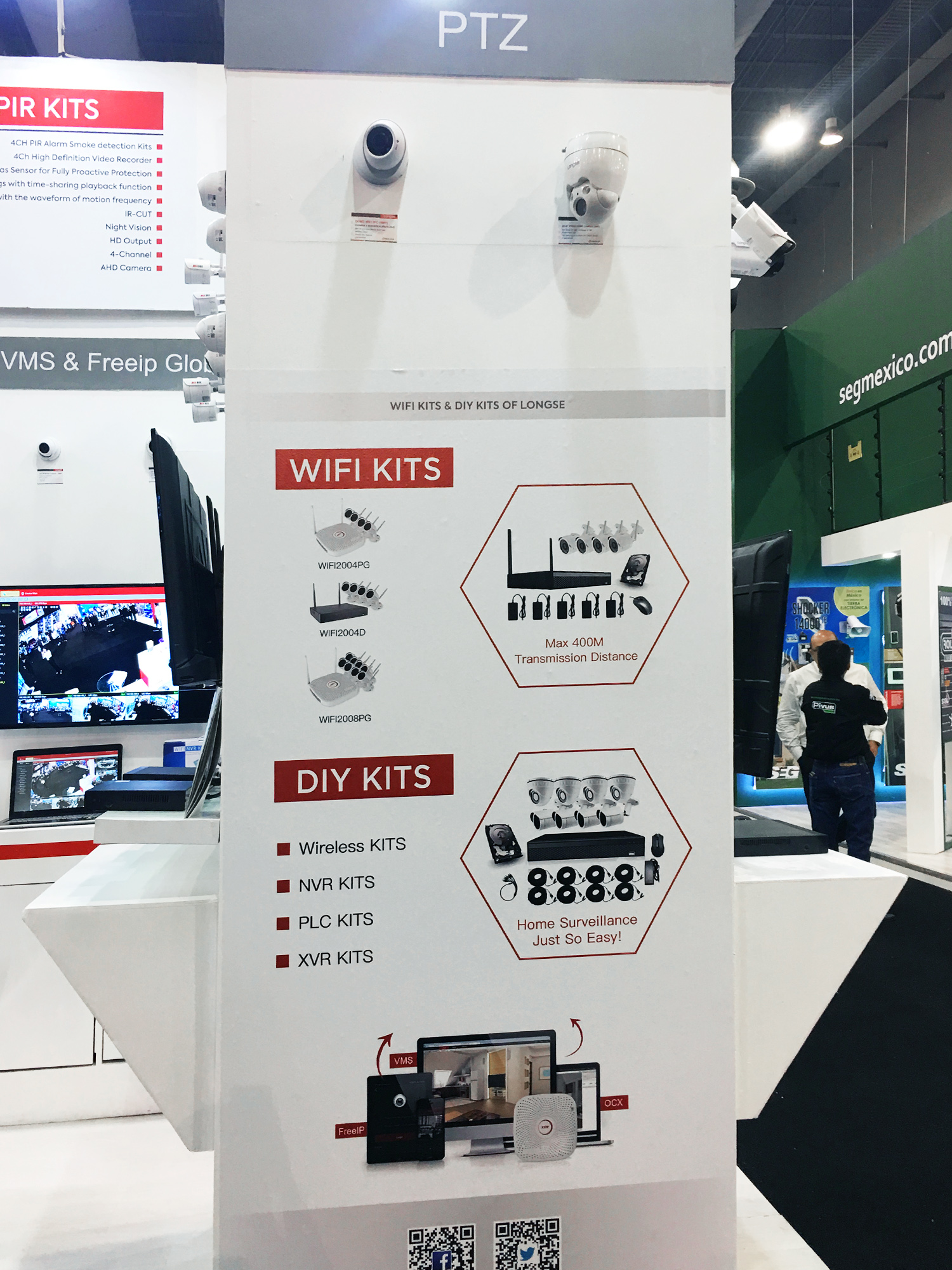 在現(xiàn)場(chǎng),客戶還會(huì)尤其青睞另外一款產(chǎn)品,那就是Wifi套裝,即插即用的便利性、經(jīng)濟(jì)效益以及它的組合式套裝吸引住了在場(chǎng)和經(jīng)過的客戶。Wifi套裝的便利性,能省時(shí)省力更省成本地為客戶提供多通道、易操作的監(jiān)控體驗(yàn),而且它的回放模式更能為客戶提供更高效的查找。此外,它的組合方式除了Wifi以外,還有NVR套裝、PLC套裝、XVR套裝,皆在滿足更多的客戶需求。